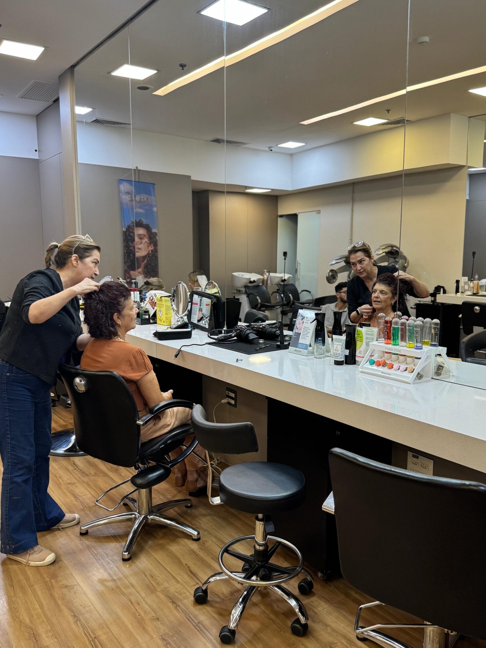 Nossos profissionais participam de treinamentos e workshops para se manter atualizados com as últimas tendências e técnicas do mercado da beleza.