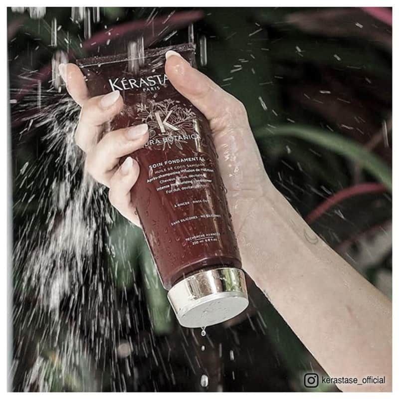 Soin Fondamental de Kérastase: O condicionador de hidratação profunda contém óleos naturais e preciosos para nutrição e força sem pesar.