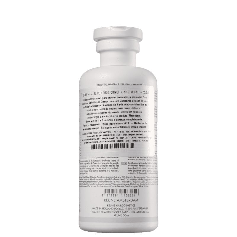 O Condicionador Curl Control de Keune proporciona definição dos cachos e controle do frizz, deixando os cachos mais soltos e sedosos. O Óleo de Semente da Framboesa, presente na fórmula da linha, é rico em Vitamina E, Ômega 3, 6 e 9 que promovem fortalecimento, brilho e reestruturação da fibra capilar.