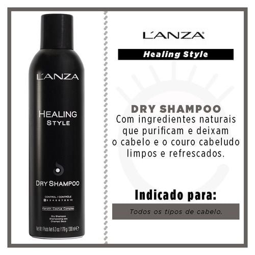 Lanza Healing Style Dry Shampoo conta com ingredientes naturais que purificam e deixam o cabelo e o couro cabeludo limpos e refrescados.