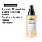 Óleo reparador para cabelos finos, ressecados e danificados. L’Oréal Professionnel Serie Expert Absolut Repair Gold Quinoa 10in1 proporciona 10 benefícios para o cabelo, com resultado de fios nutridos, brilhantes e leves, com toque suave.